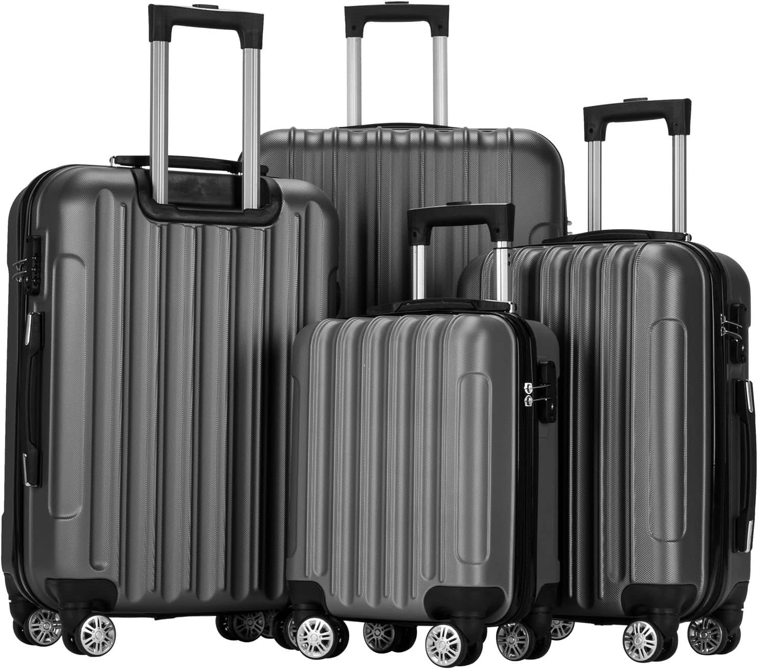 Euroco Luggage Sets 5 Piece, ABS Hardside Expandable Suitcase Set with ...