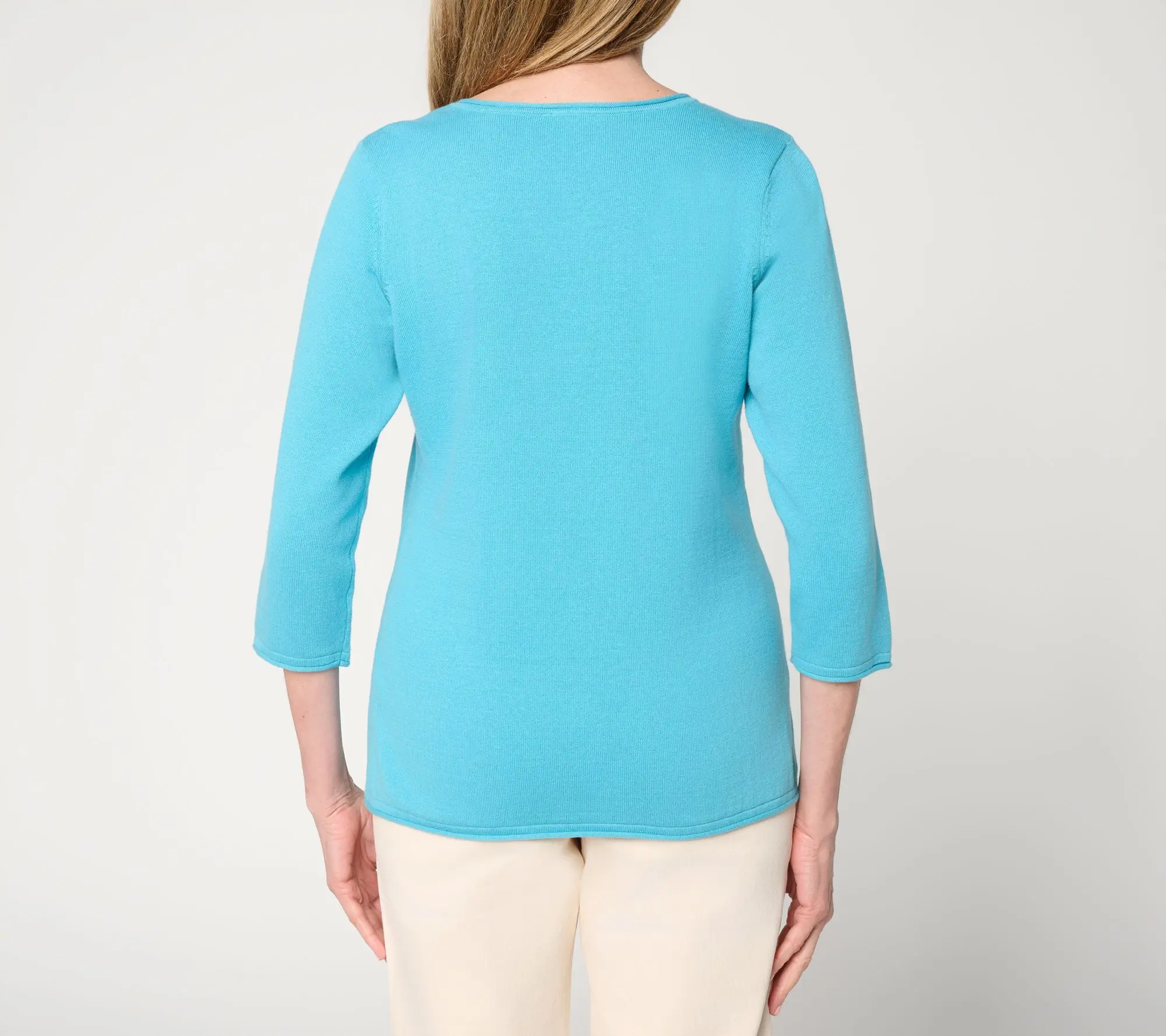 Denim & Co. Beach 3/4 Sleeve V-Neck Sweater w/ Shell Motif - TikTok Shop