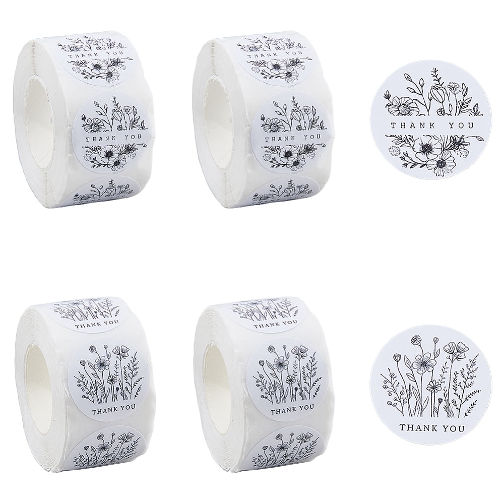 4 Rolls 2 Styles Paper Self-Adhesive Stickers Flower White 25mm 500pcs ...