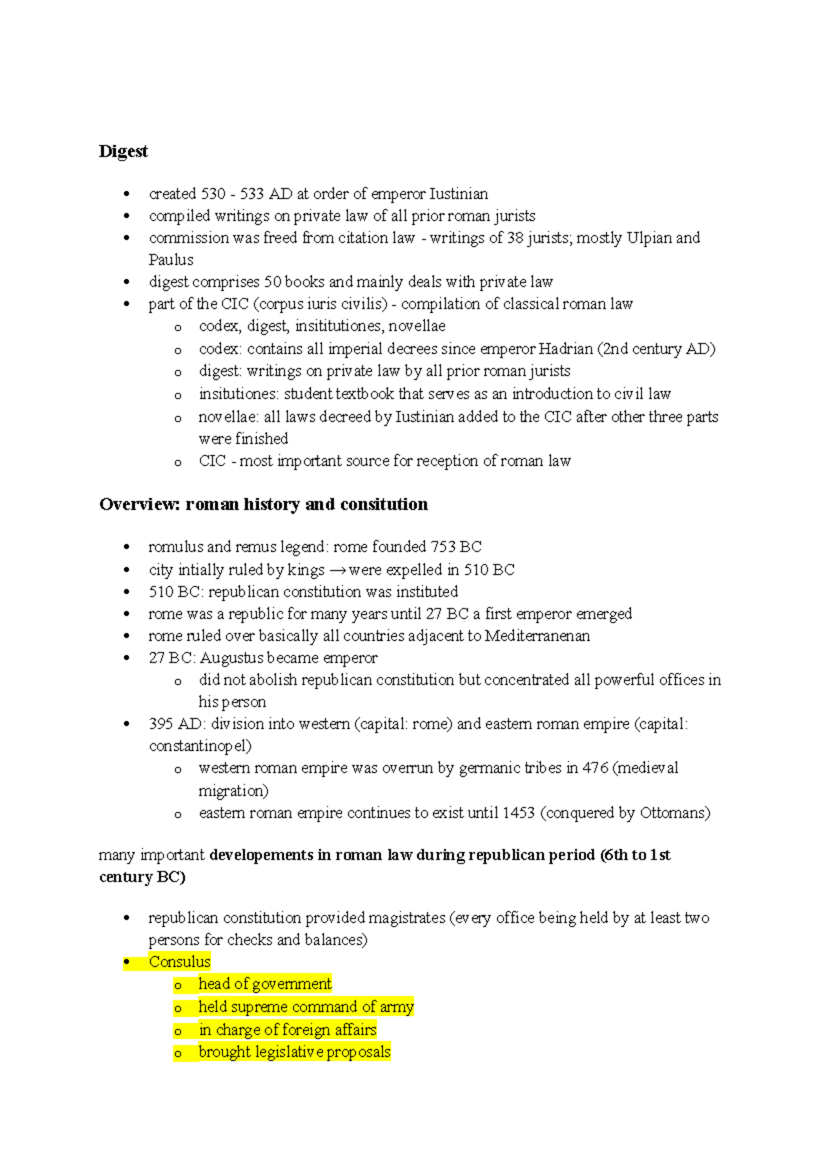Roman Law - History (Course Code: 530 533) - Studocu