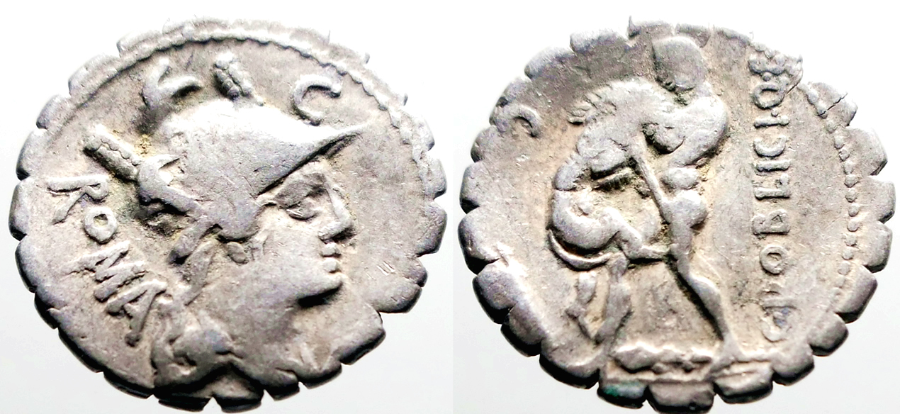 Roman Republic C. Poblicius Denarius Serratus. Hercules strangling the ...