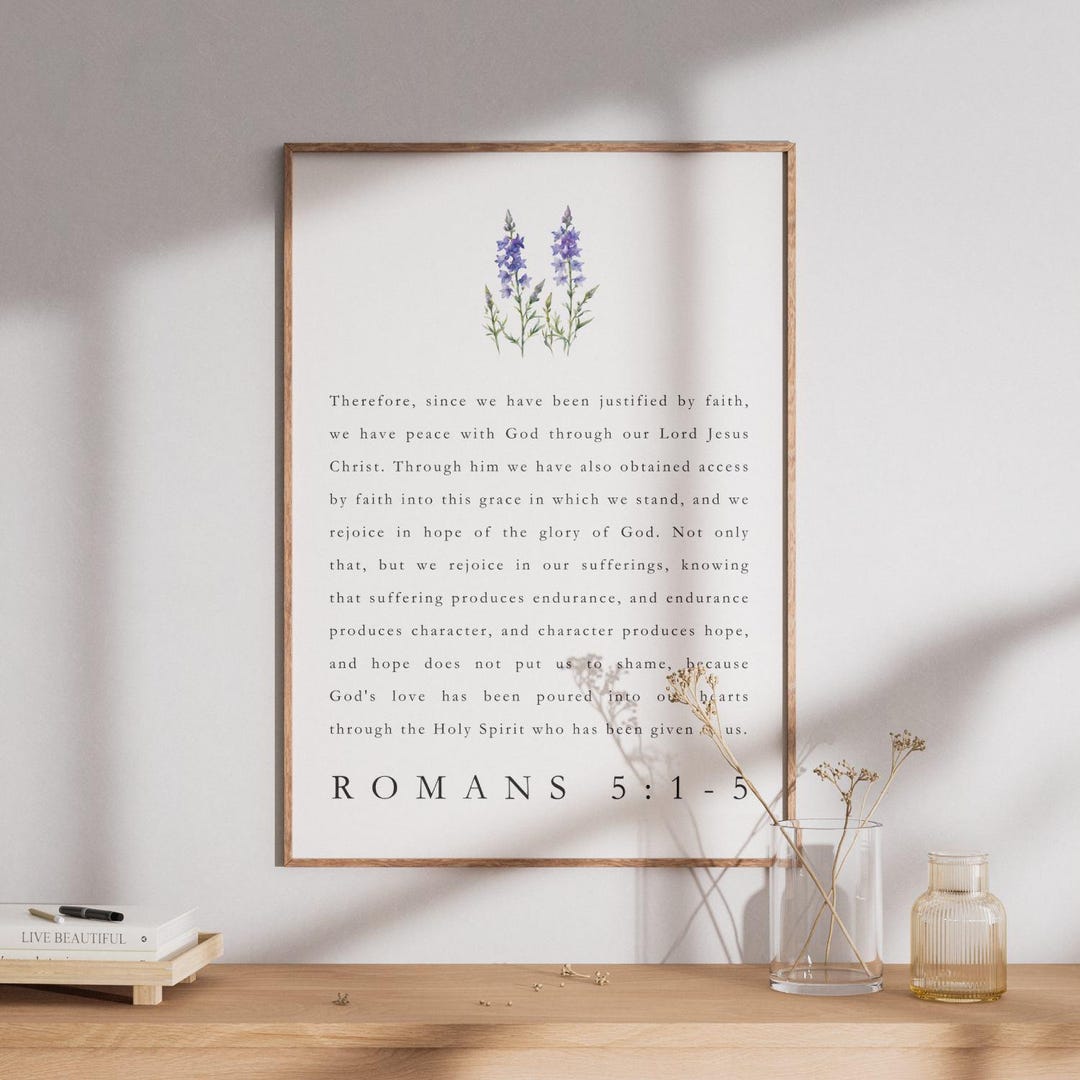 Romans 1:1-5, Minimal Bible Verse Art, Bible Verse Print, Floral Bible ...