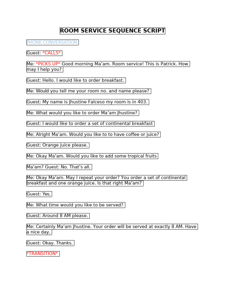 450818013 Script FBS Sequence ROOM Service - ROOM SERVICE SEQUENCE ...