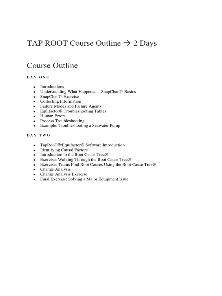 TAP ROOT Course Outline | PDF