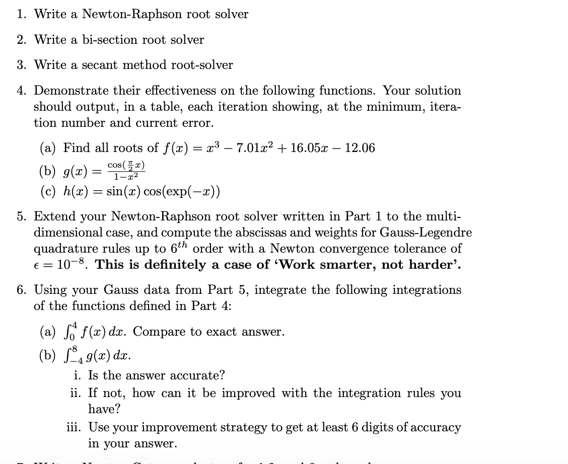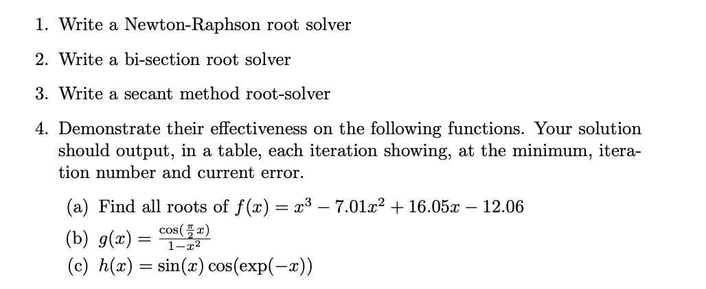 Solved 1. Write a Newton-Raphson root solver 2. Write a | Chegg.com