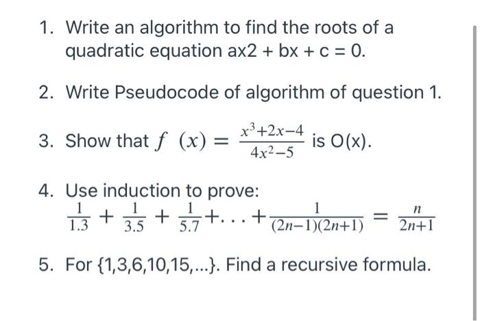 Solved 1. Write an algorithm to find the roots of a | Chegg.com