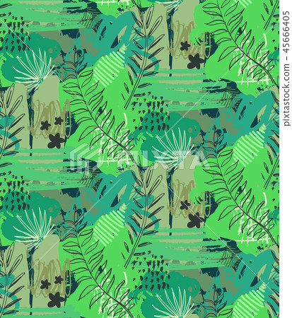Abstract creative seamless pattern with tropical plants and artistic ...