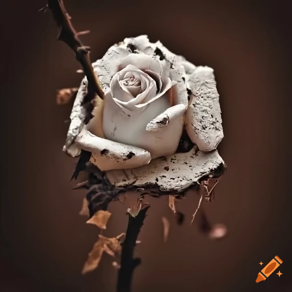 A fading single bush rose in the middle of dust cobwebs and splinters ...