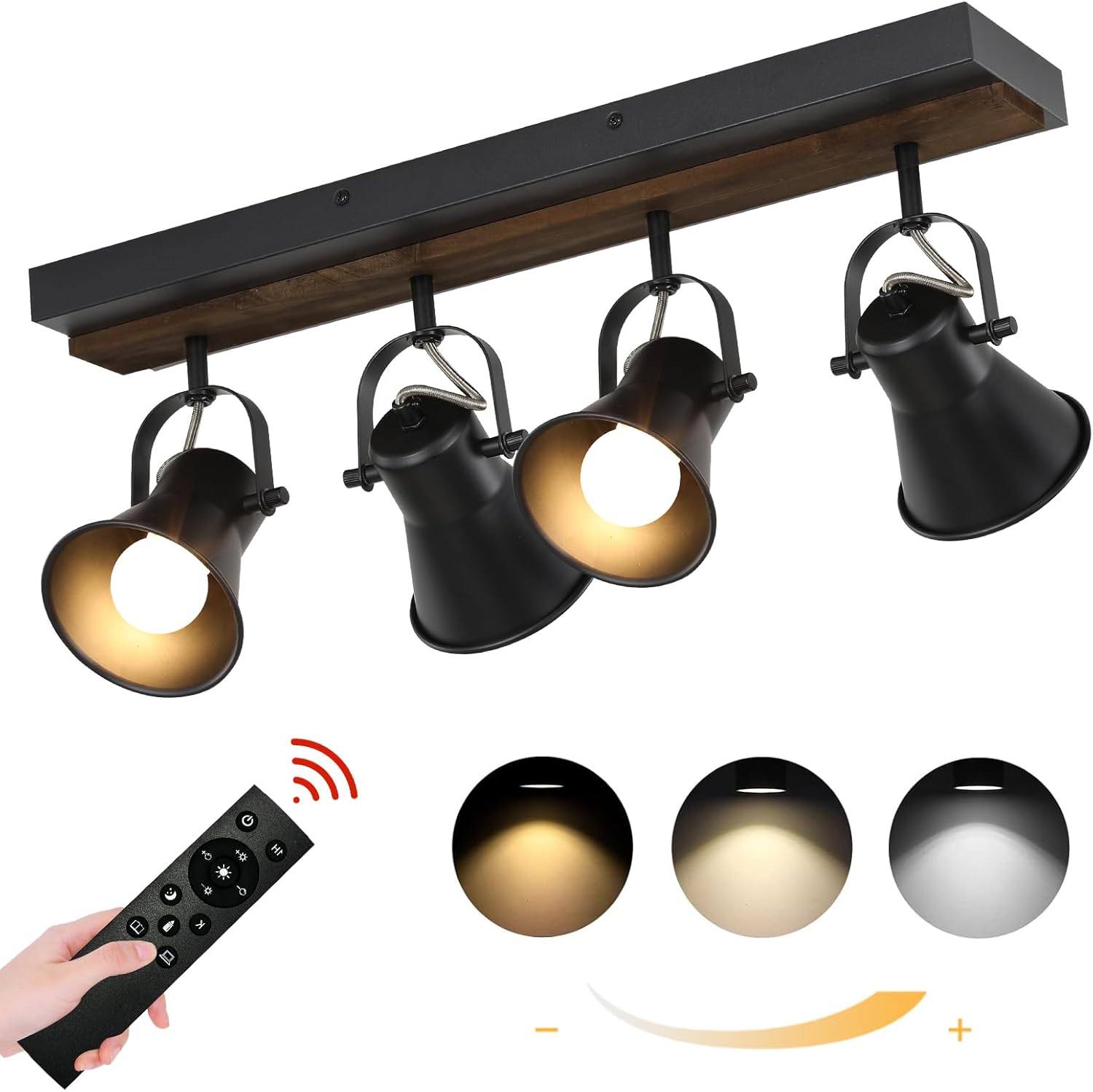 KEESFU 4-Light Track Lighting Kit Dimmable with Remote Control, Black ...