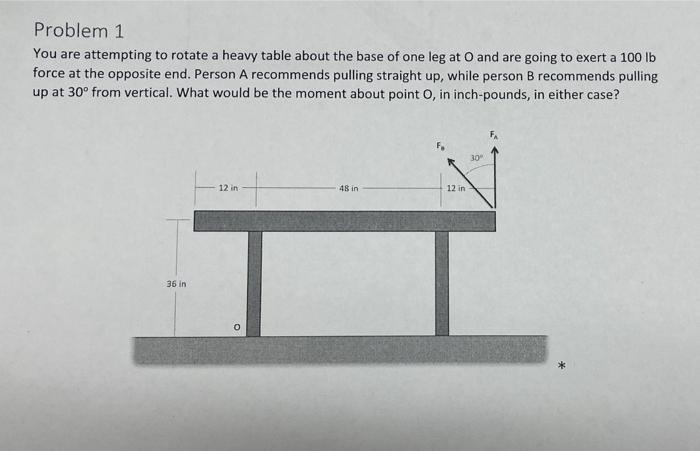Solved Problem 1 You are attempting to rotate a heavy table | Chegg.com