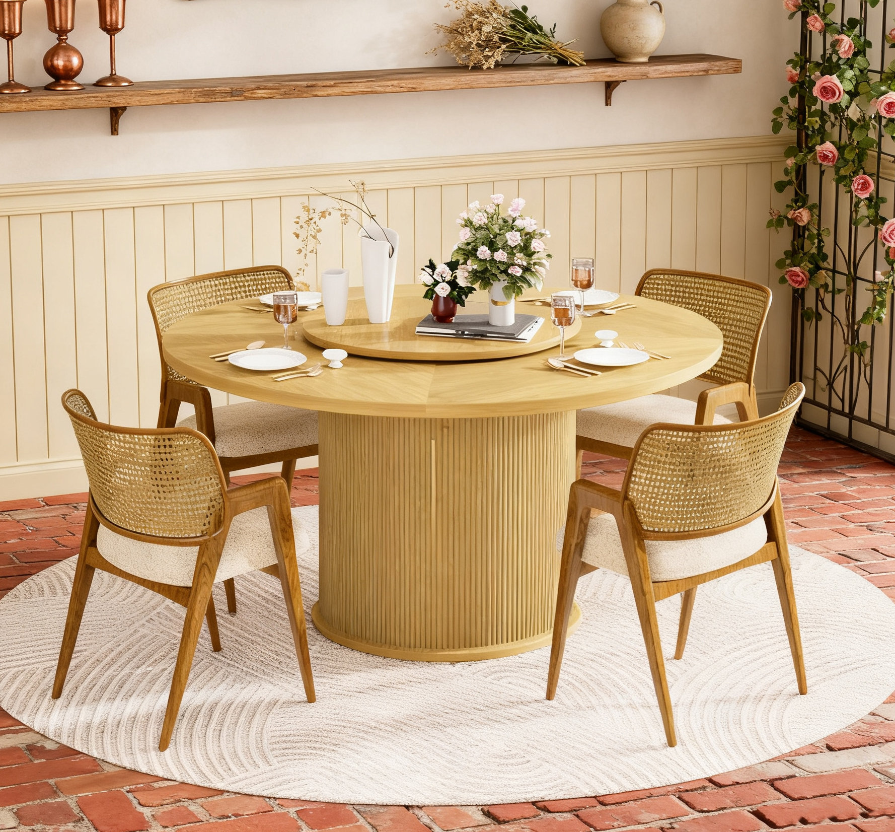 Classic Solid Wood Rotating Round Dining Table for Traditional Dining Rooms