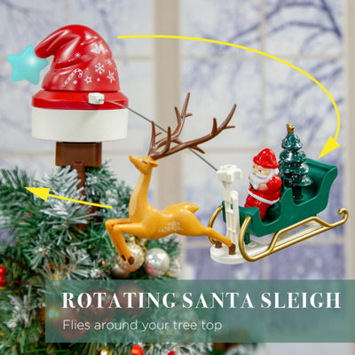 Rotating Christmas Tree Topper Illuminated Santa Sleigh Reindeer Star ...