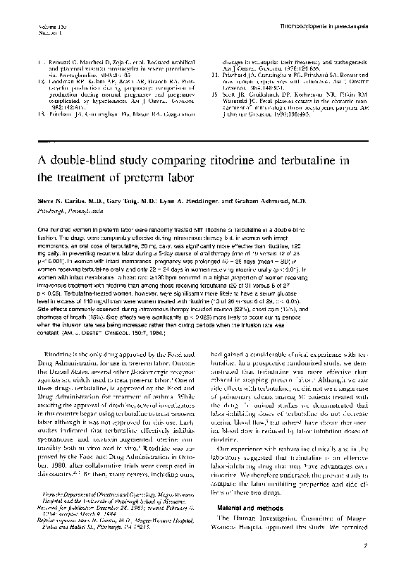 (PDF) A double-blind study comparing ritodrine and terbutaline in the ...