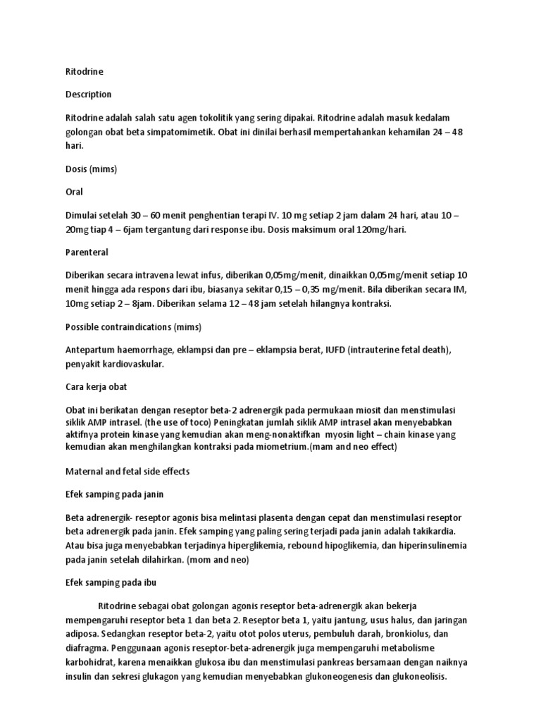 Ritodrine: Dosis, Efek Samping, dan Kontraindikasi | PDF | Pengembangan ...