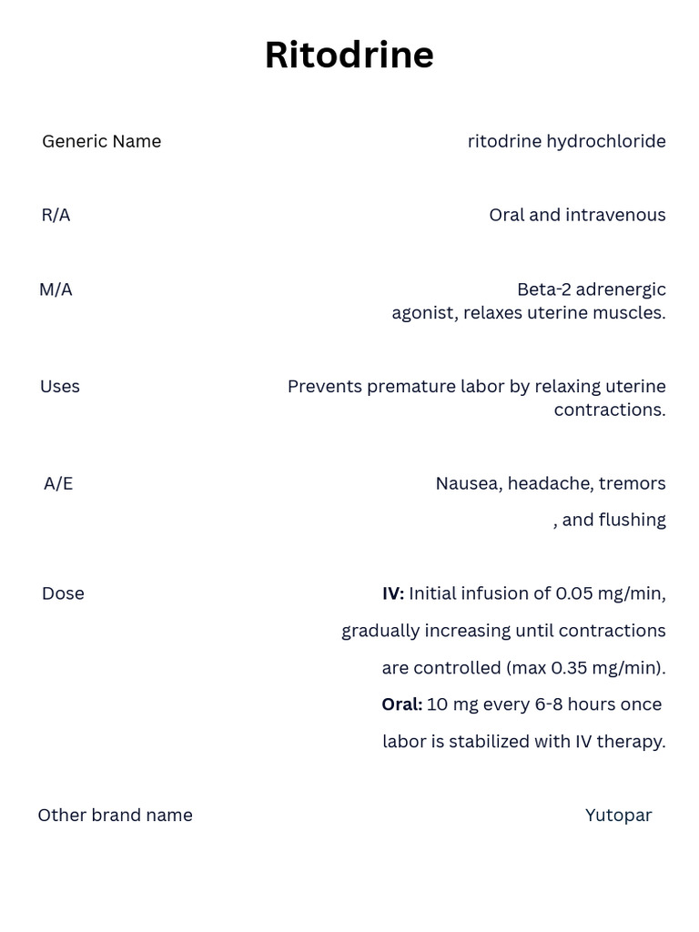 Comprehensive Guide on Ritodrine Medication Administration | Course Hero