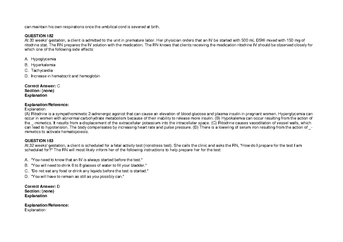 NCLEX-RN 2026-0093: Premature Labor & Ritodrine IV Management - Studocu