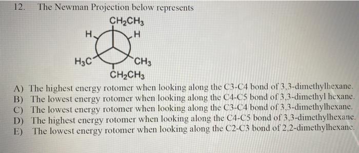 Solved 12. The Newman Projection below represents CH2CH3 H. | Chegg.com