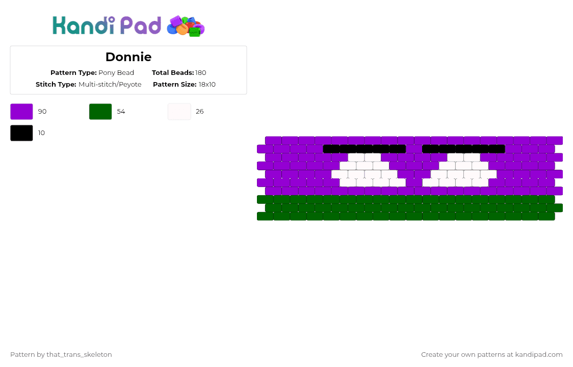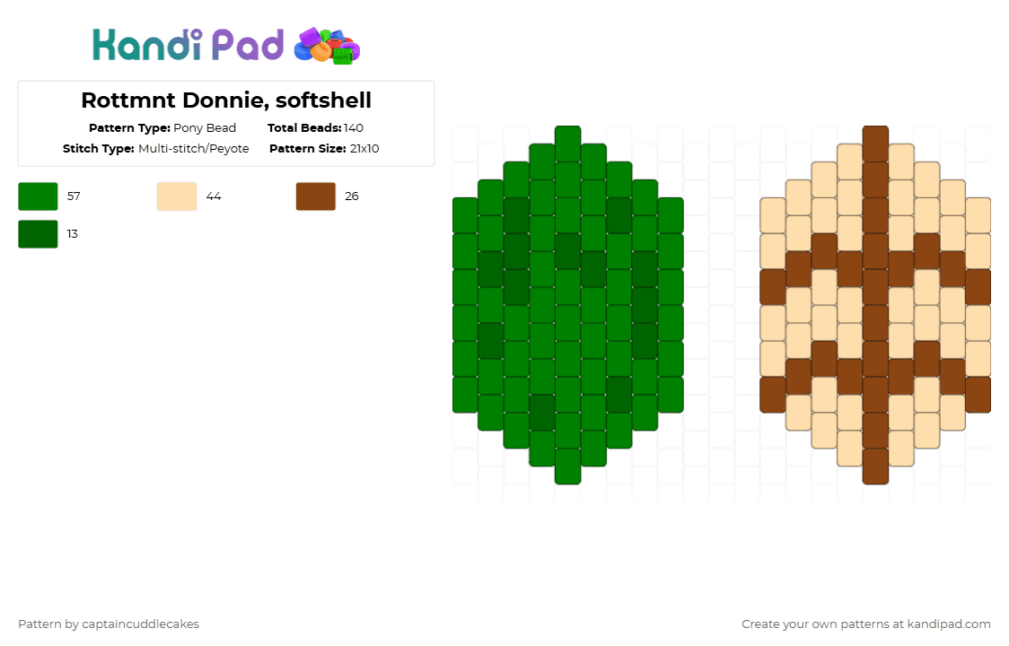 Rottmnt Donnie, softshell Pony Bead Pattern - Kandi Pad | Kandi ...