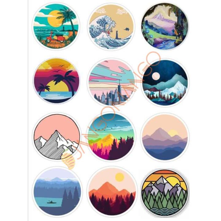 10 Pcs Beautiful Scenery Round Shape Stickers Pack for Laptop Desk ...