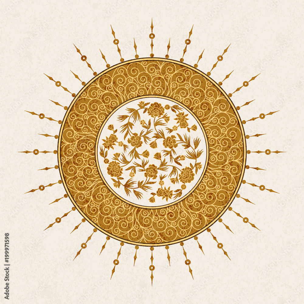 Oriental round pattern with arabesques and floral elements. Abstract ...
