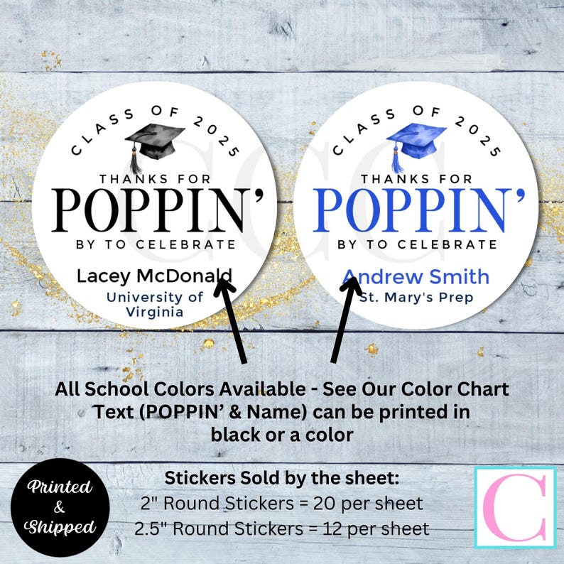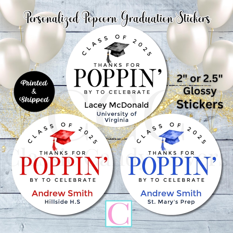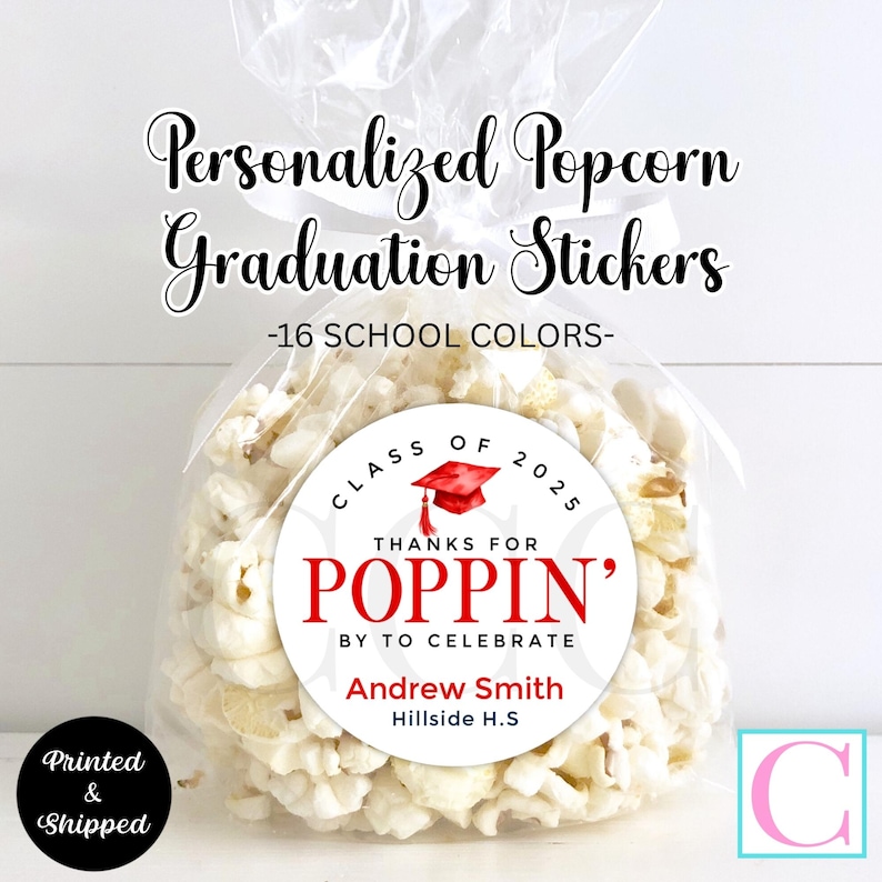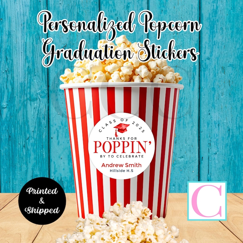 Graduation Popcorn Stickers, Class of 2026 Personalized Grad Popcorn ...