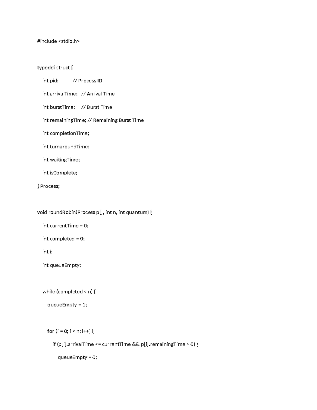 Round Robin Scheduling Algorithm Implementation in C - CS 101 - Studocu
