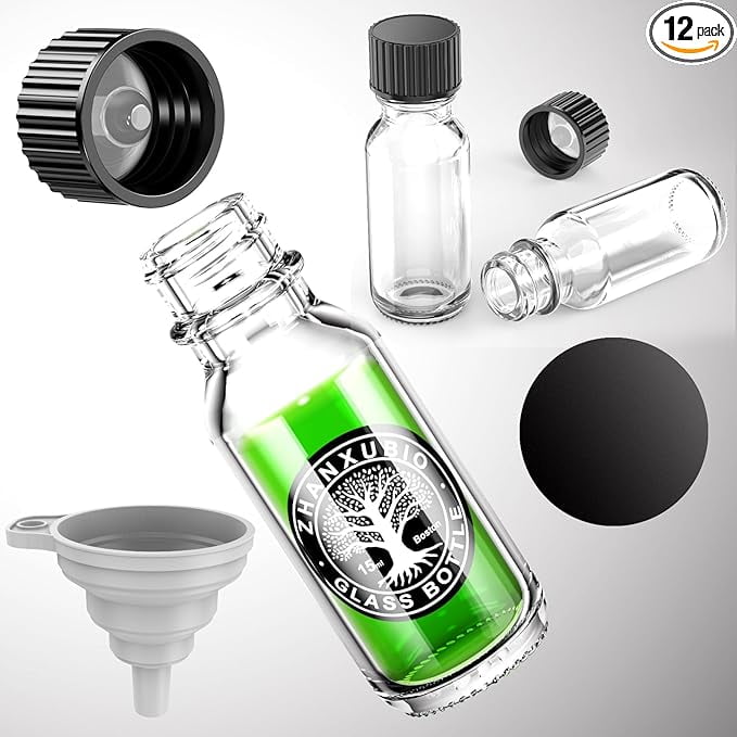 0.5 oz Clear Glass Bottles, 15ml Boston Round Sample Bottles with Black ...