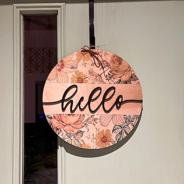 Welcome Door Hanger, Welcome Wood Circle Sign, Hello Spring, Hello ...