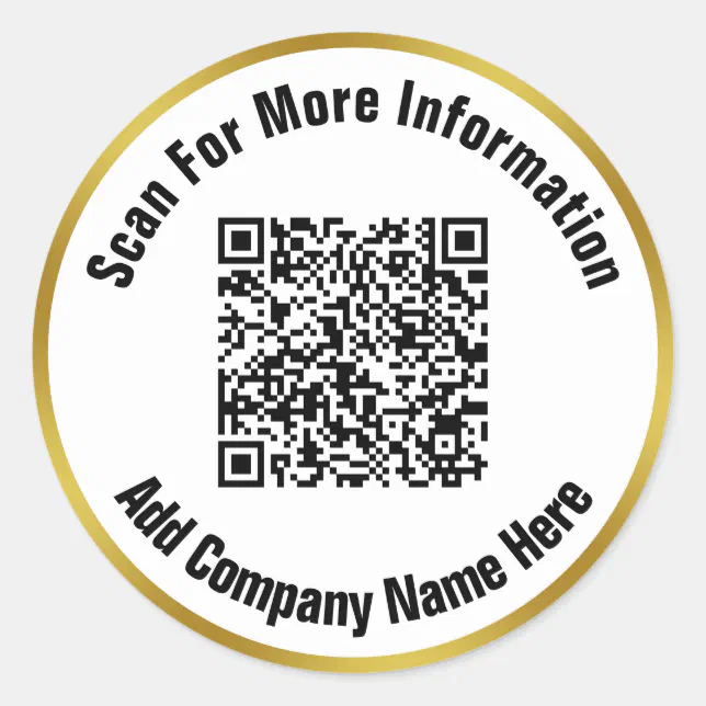 Elegant Black White Gold Text Scan QR Code Classic Round Sticker | Zazzle