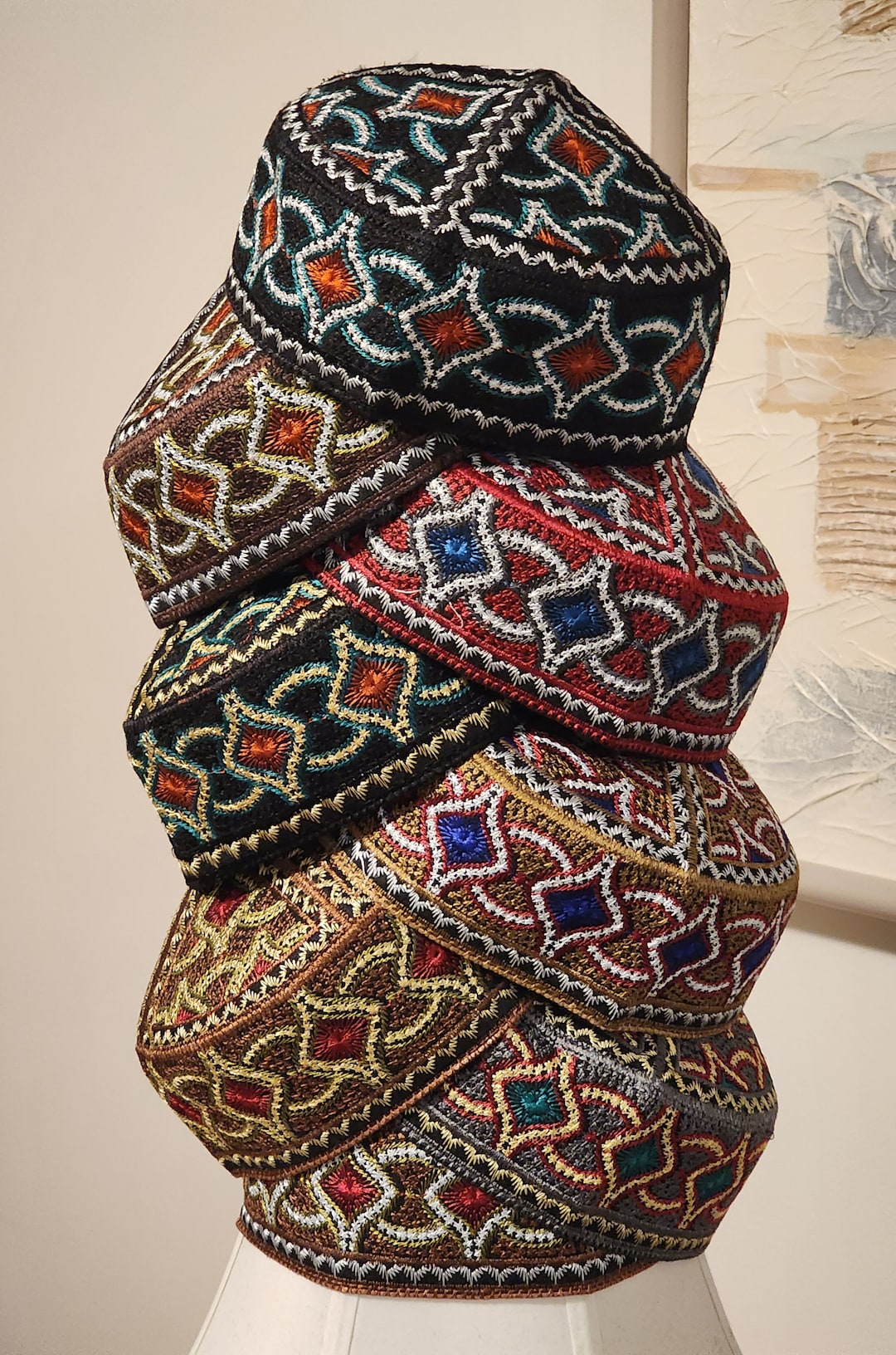 Silk Thread Embroided Round Cap for Men/women. Size 22 & 22.5 Inches ...
