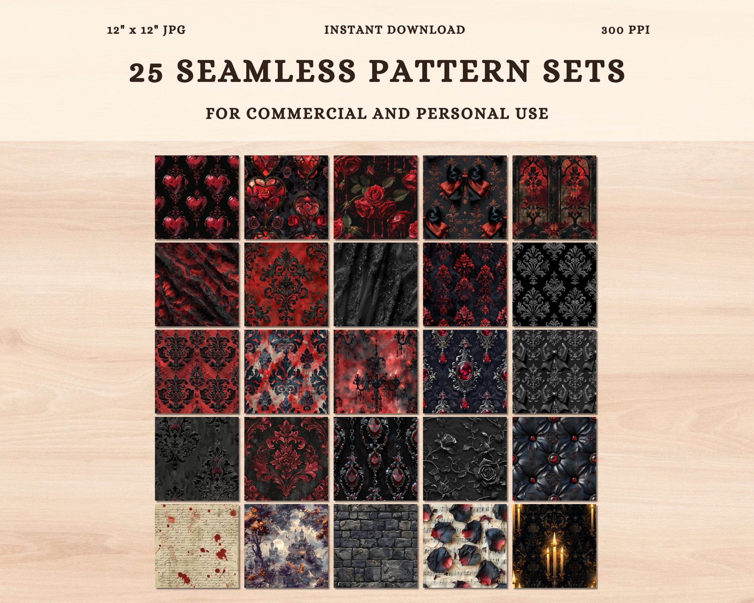 Everlasting Night: Seamless Vampire Gothic Digital Paper Set 24 ...