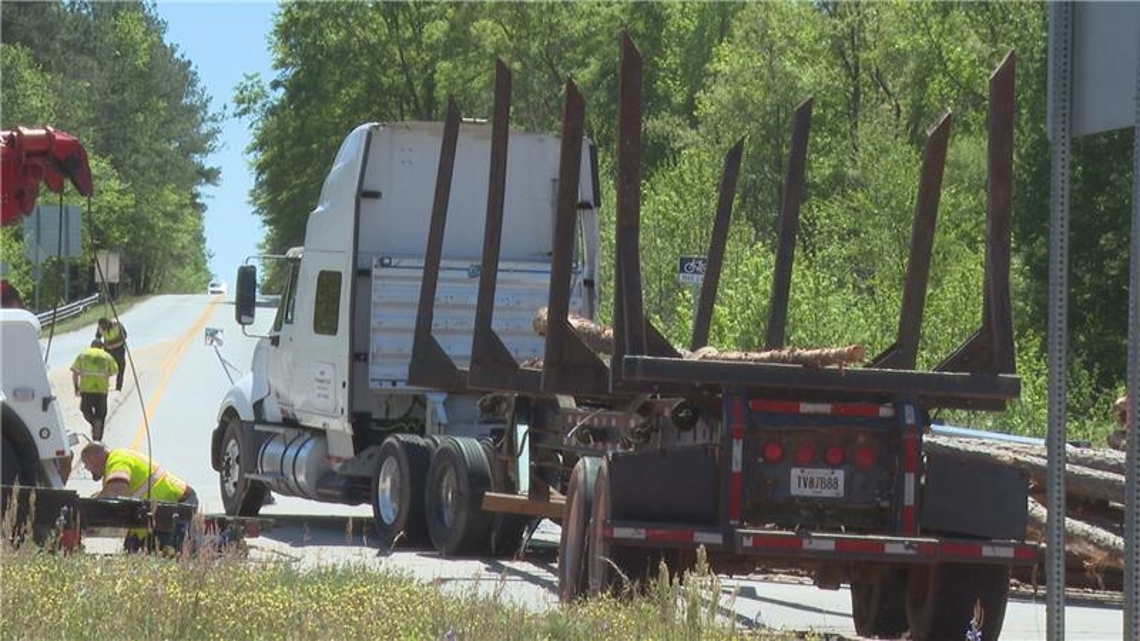 Log-truck overturns at Monroe County roundabout, causing guardrail ...