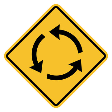 Yellow Roundabout Sign Free Black And White Road Signs, Download Free