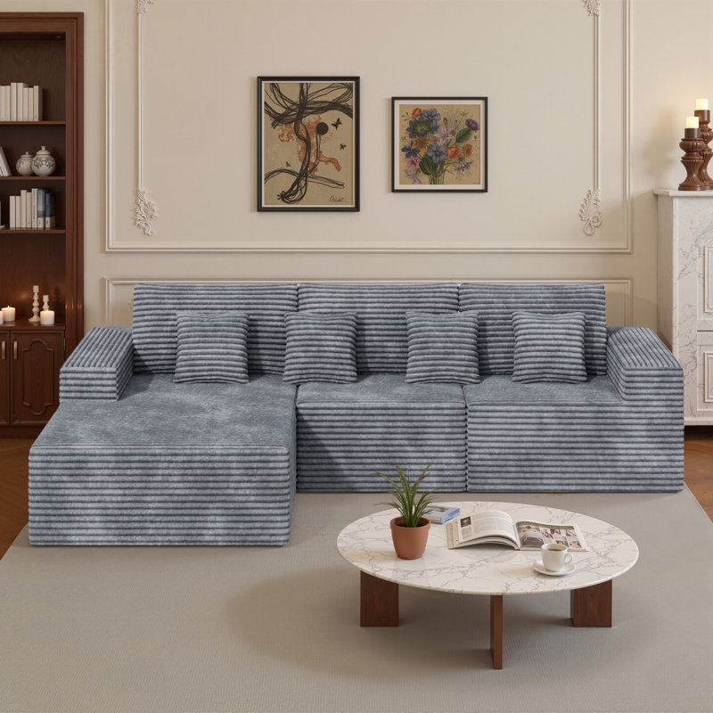 Ebern Designs L-Shaped Corduroy Modular Corner Sofa, Fixed Chaise with ...