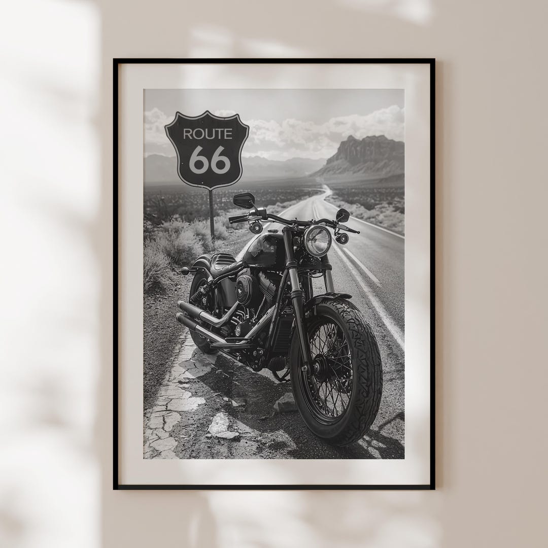 Route 66 Poster, Black and White Route 66 Print, Harley Davidson ...