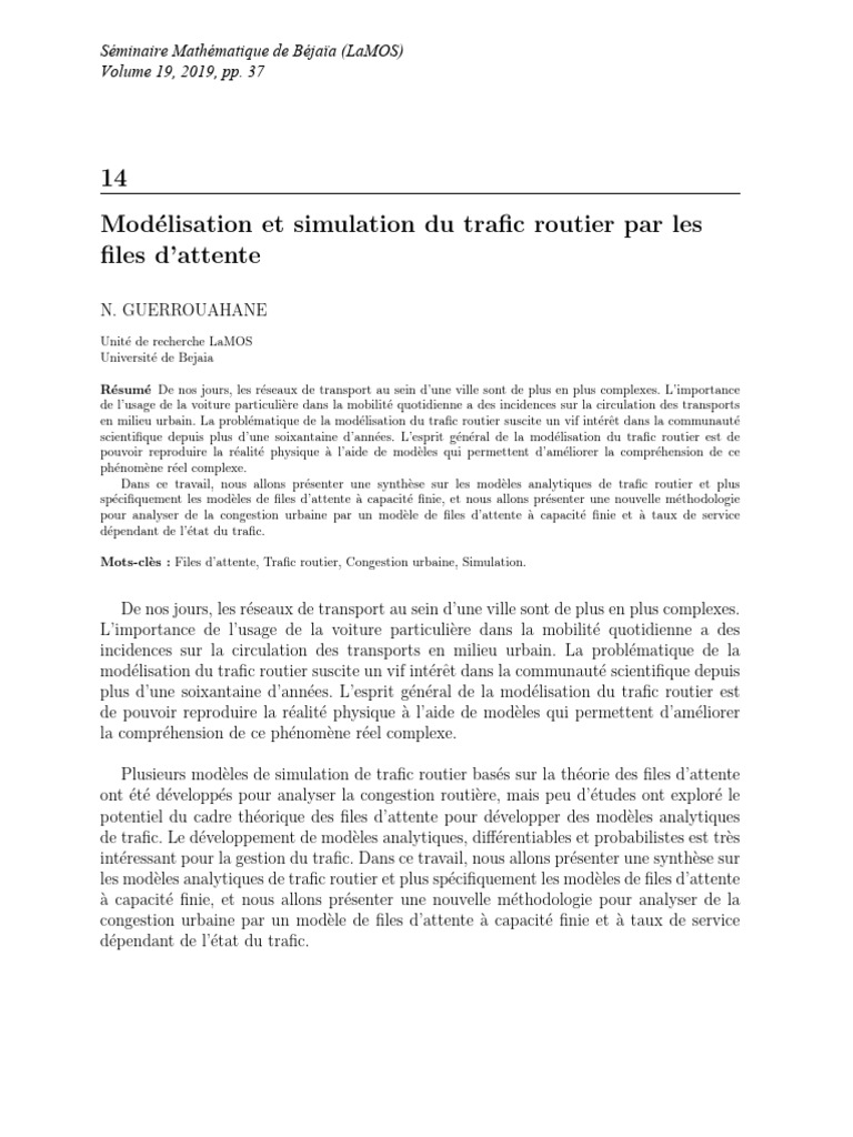 Modélisation du trafic par files d'attente | PDF | Modèle mathématique ...