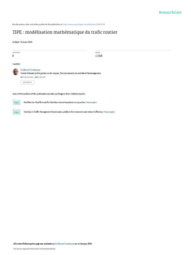 Modélisation du Trafic Routier | PDF | Embouteillage (route) | Modèle ...