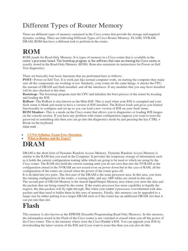 Different Types of Router Memory | PDF | Booting | Read Only Memory