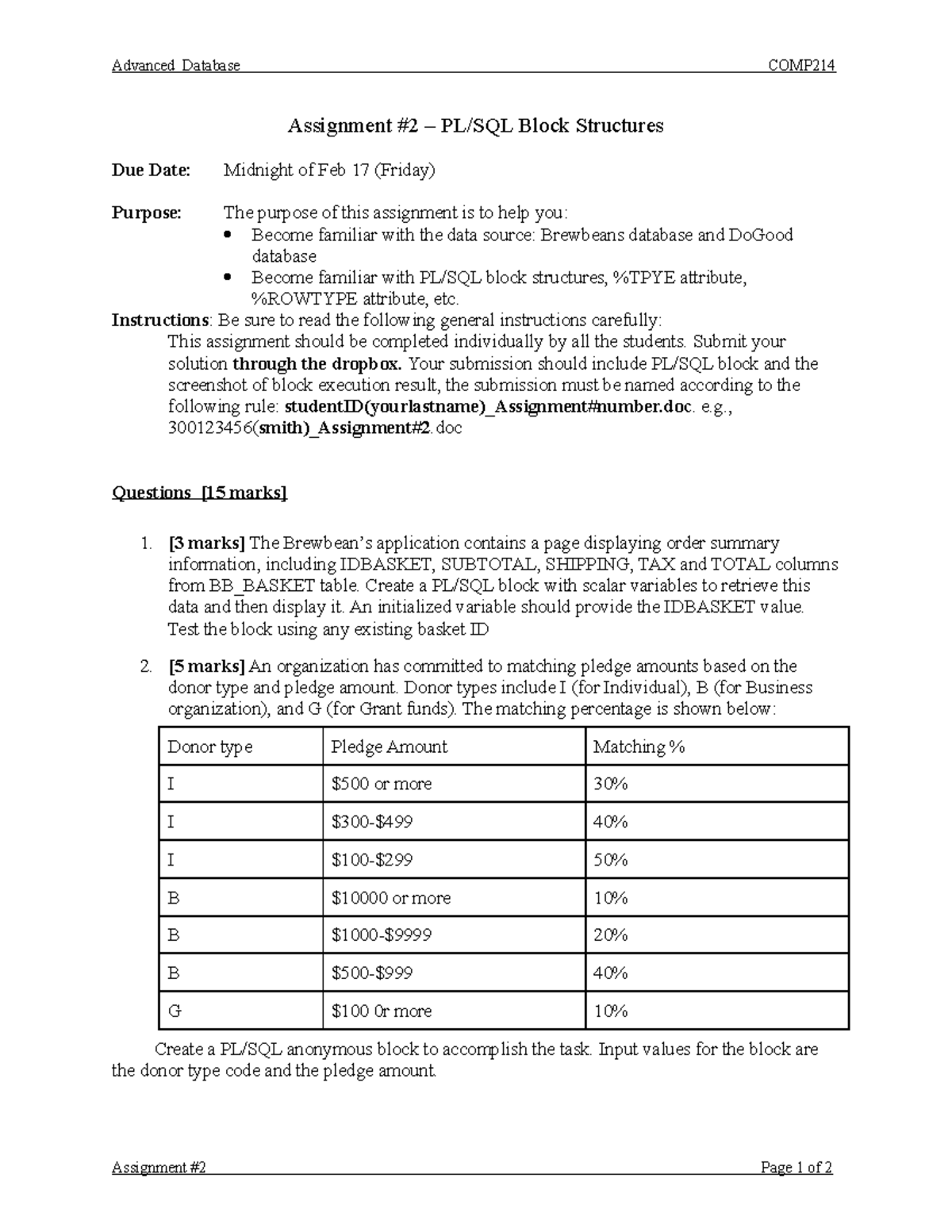 Assignment 2 - PL/SQL block structures, %TPYE attribute, %ROWTYPE ...