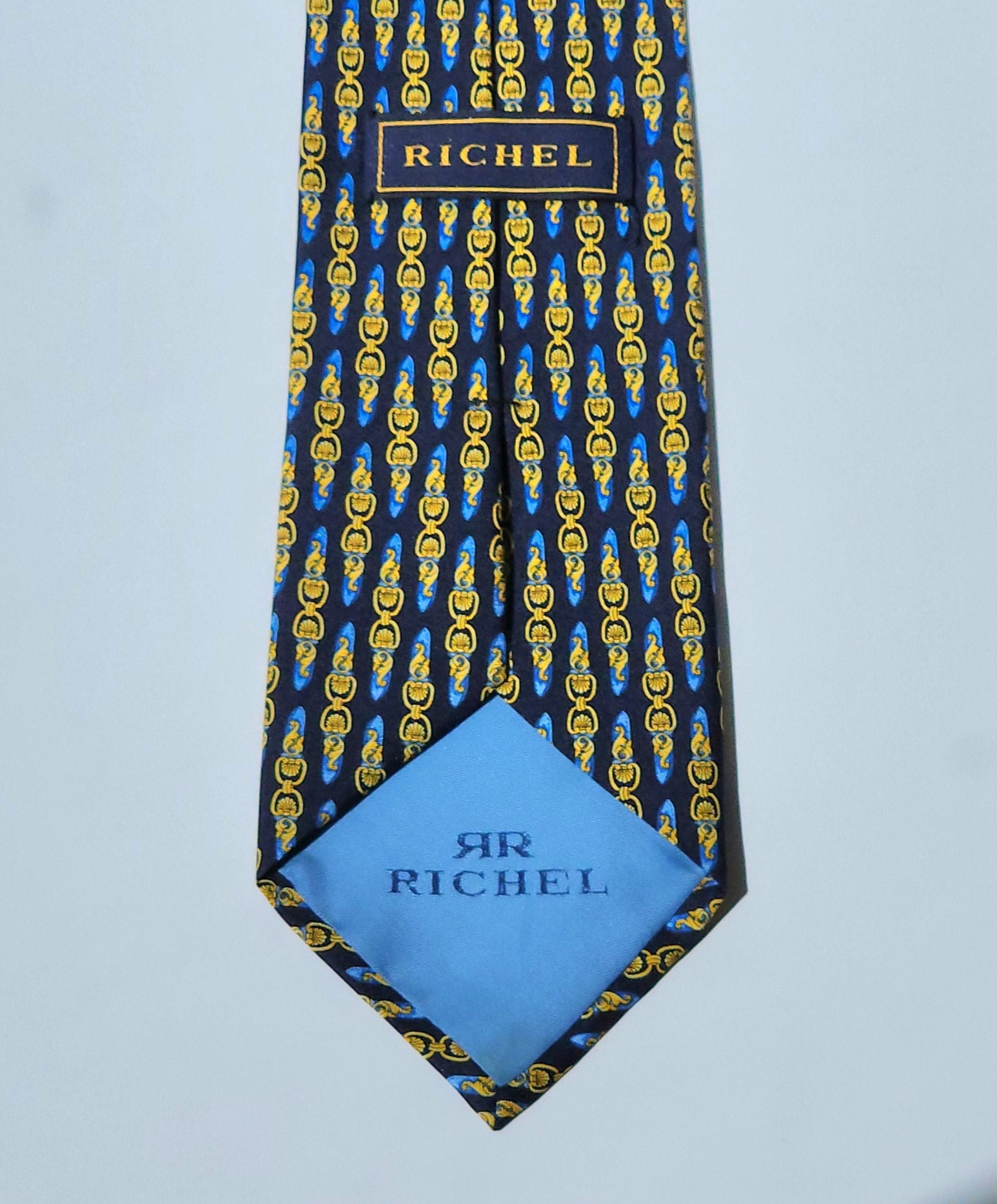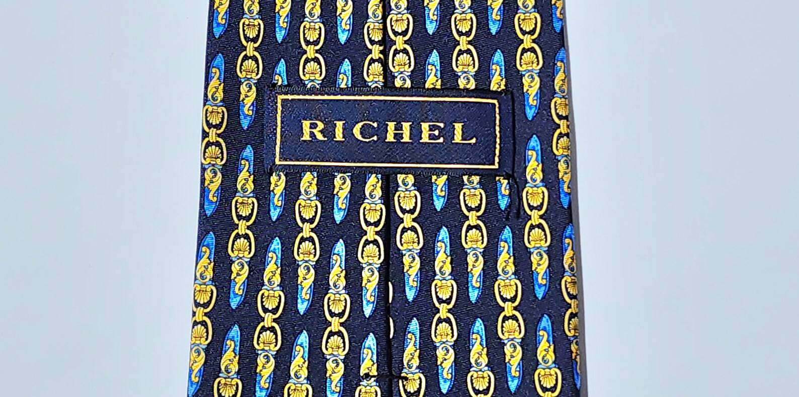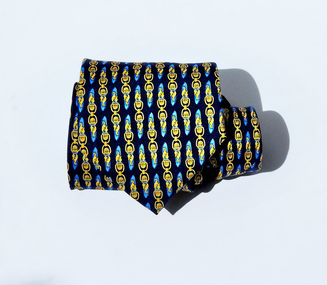Royal Richel Tie Shells and Scrolls Yellow Gold on Navy Blue Background ...