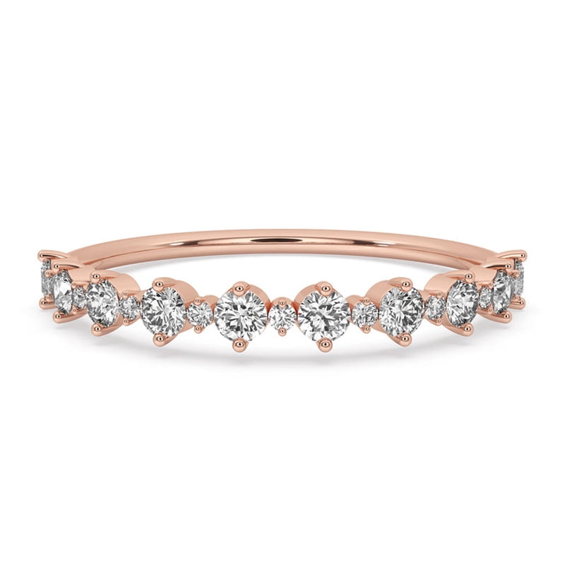 0.34 TCW Round Cut Lab Grown Diamond Half Eternity Band Prong Set Rose ...