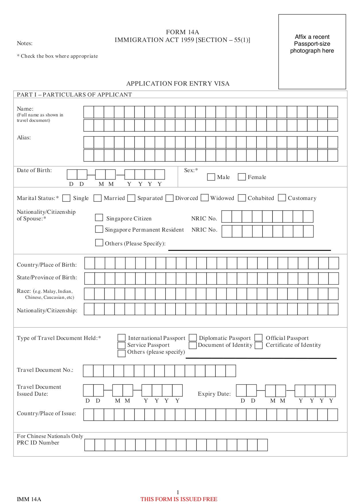 Singapore Visa Form 14A Guide | PDF | Passport | Travel Visa