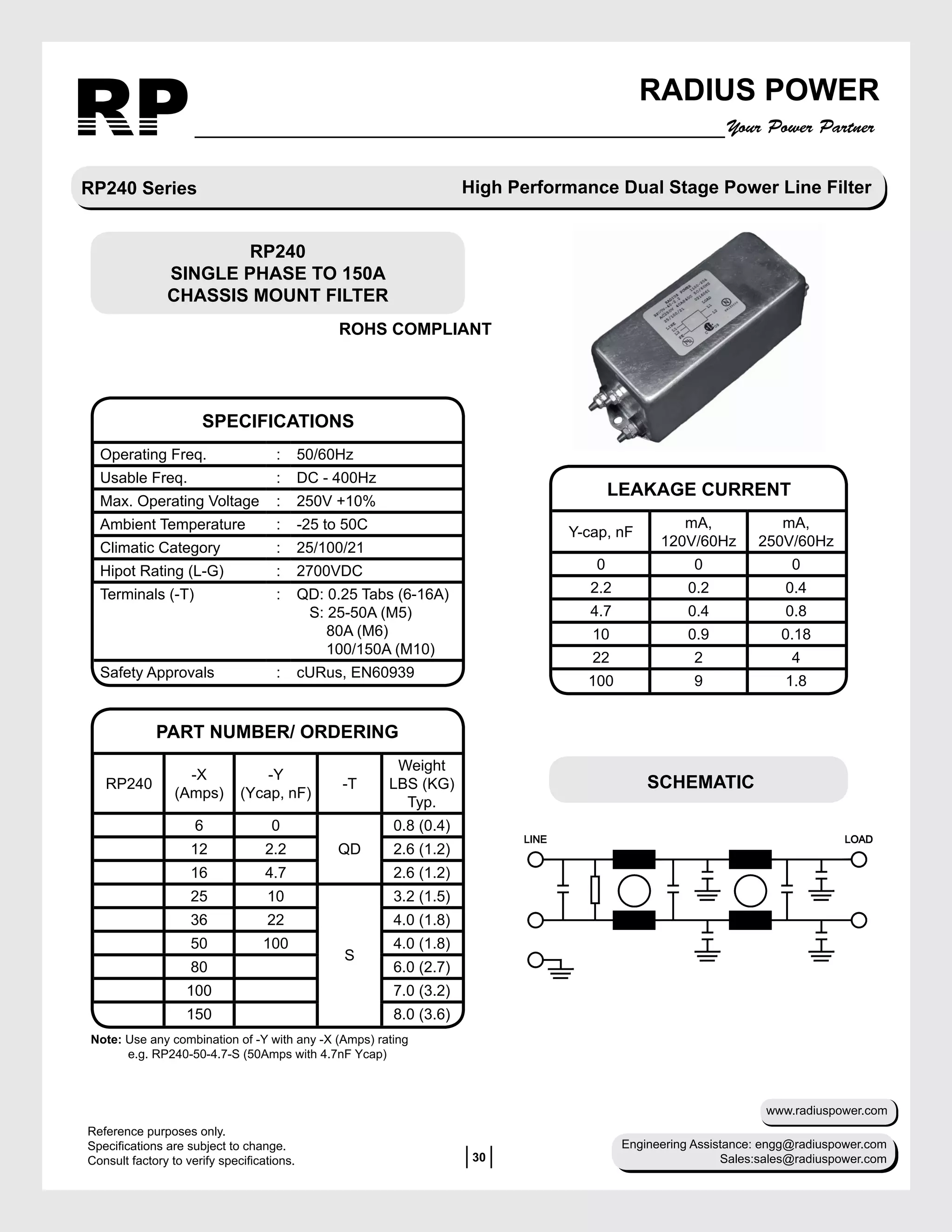 Single Phase EMI Filter - RP240 Series | PDF