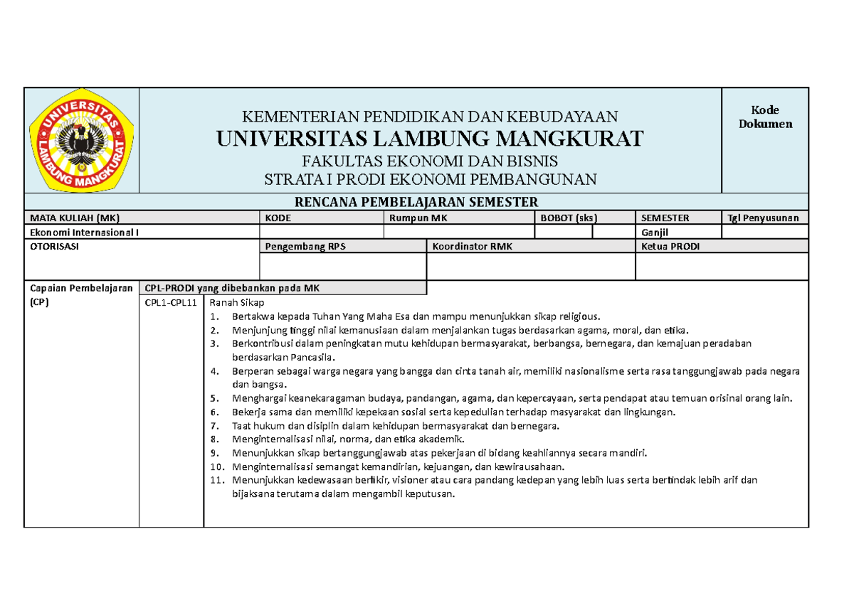 RPS Ekonomi Internasional I - KEMENTERIAN PENDIDIKAN DAN KEBUDAYAAN ...