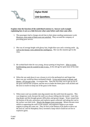 National 5 RUAE: Linking Questions