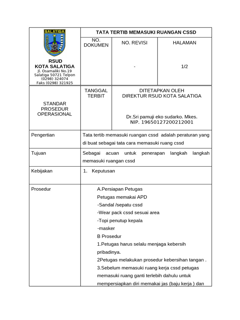 Tata Tertib Memasuki Ruang Cssd. | PDF