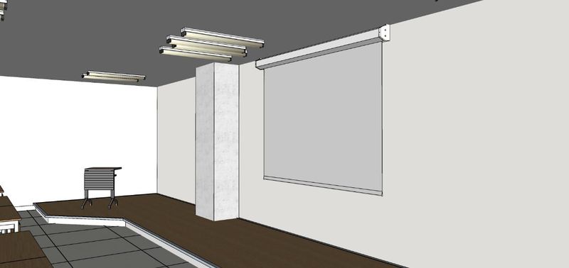 Preview desain renovasi ruang display HPL list stainless roller blind