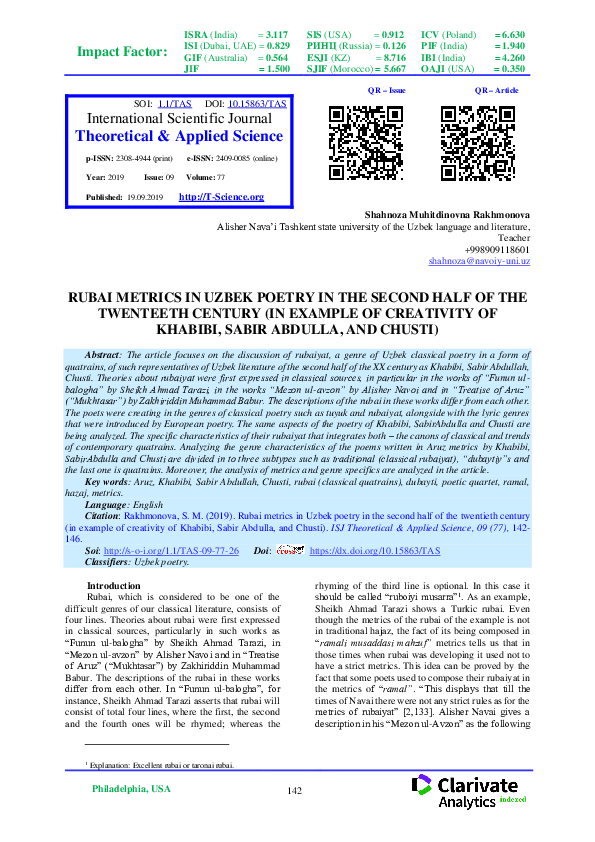 (PDF) RUBAI METRICS IN UZBEK POETRY IN THE SECOND HALF OF THE TWENTEETH ...