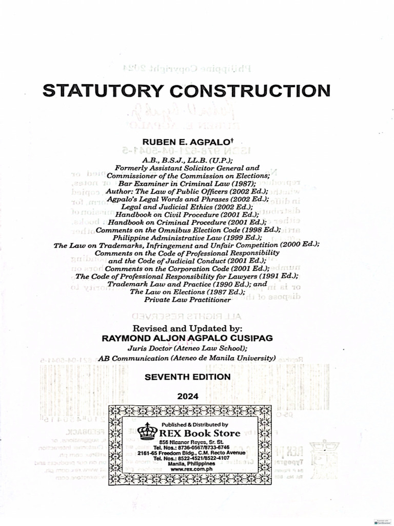 Statutory Construction by Rubben E. Agpa | PDF