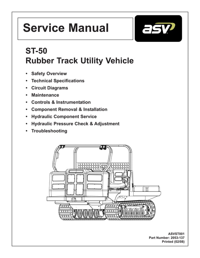 ASV ST-50 Rubber Track Utility Vehicle Service Repair Manual Download ...